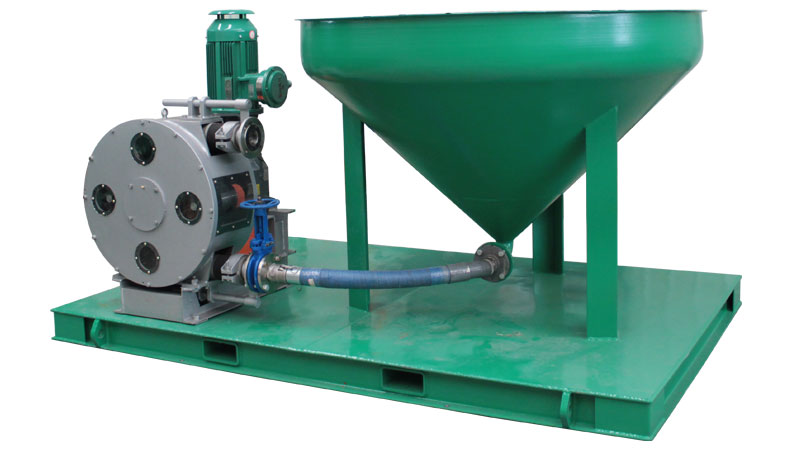 鉆屑輸送裝置由錐形鉆屑接收漏斗和鉆屑輸送泵以及控制裝置構成,能夠接收固控設備用螺旋輸送機輸送過來的鉆屑和鉆井廢棄物。鉆屑輸送泵由電機驅動,通過真空作用吸取鉆屑,輸送給鉆屑干燥篩或者鉆屑甩干機處理。鉆屑輸送泵具備較強的自吸能力,專門用于輸送高粘度高固含量耐磨耐酸耐腐介質,且無密封結構輸出壓力高。