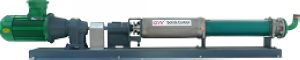 單螺桿泵是為離心機(jī)供漿的理想設(shè)備,不用剪切和攪拌泥漿。主要部件有螺桿軸(轉(zhuǎn)子),螺桿套管(定子)。由于兩部分獨(dú)特的幾何形狀,它們分別產(chǎn)生擠壓量。廢漿隨軸流動(dòng),內(nèi)部流速低,保持容量,壓力穩(wěn)定,這樣不會(huì)產(chǎn)生渦旋和攪拌。泵的螺桿由不銹鋼制成,GN全不銹鋼機(jī)身螺桿泵可選。螺桿泵能夠用耦合器,或通過(guò)變速電機(jī)調(diào)節(jié)速度,三角V形帶,齒輪箱等驅(qū)動(dòng)。G系列螺桿泵附件少,兼容的結(jié)構(gòu),小體積,易保養(yǎng),轉(zhuǎn)子和定子是泵的易損件,方便替換。定子由人造橡膠材質(zhì)制成,在轉(zhuǎn)送高黏度和硬的懸浮物的廢漿方面比其他的泵有特殊的優(yōu)勢(shì)。